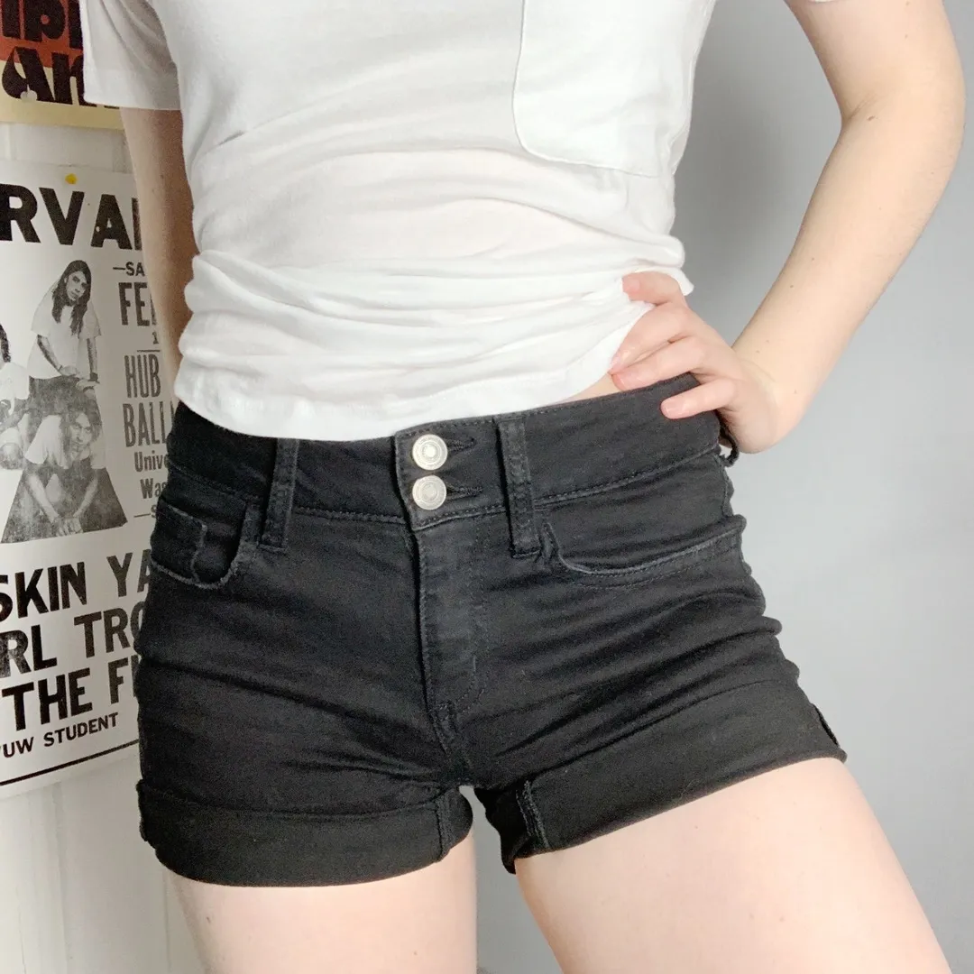 All black midi shorts by SO Worn a few times, in great condition waist: 27 in rolled length: 12 in... Show more