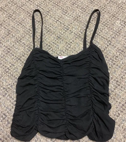 SO Black Ruched Spaghetti Strap Tank Top Size Juniors Small Preowned, EUC Approx. Measurements… Pit... Show more