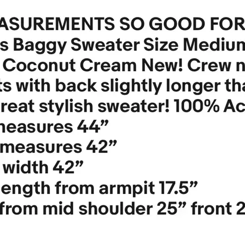 SEE MEASUREMENTS SO GOOD FOR LIFE Womens Baggy Sweater Size Medium Juniors Coconut Cream New! Crew n... Show more