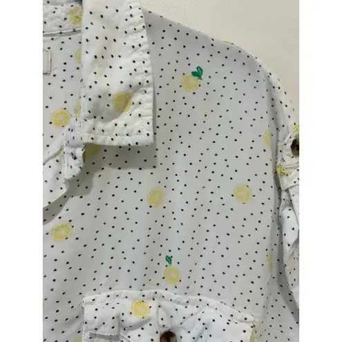 SO button down shirt size L white with lemon print allover sleeveless great preowned condition