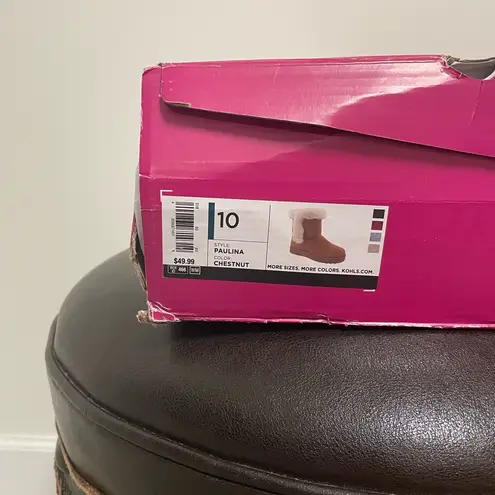 Brand: SO Size: 10 M Style: “Paulina” style pull on ankle boots. Chestnut brown faux suede materia... Show more