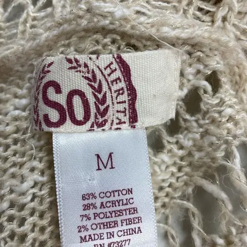 SO, Women’s open weave, lightweight, Hooded, Cardigan, Metallic Flecking, Sz M, Cream color, 83% cot... Show more