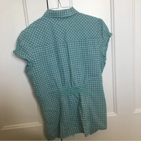 Womens size large short sleeve button up plaid shirt Green - $19 - From Cari