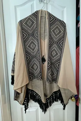 Stylist Shawl Featuring A Geometric Black And Tan Colors With Tassel Details Excellent Condition S... Show more