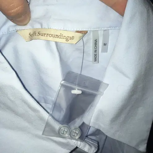 Baby blue button down tunic. NWOT, still has the button bag attached to the tag. Approximately 21 inches from armpit to armpit, 31 inches long. From a pet and smoke free house. Happy to bundle!