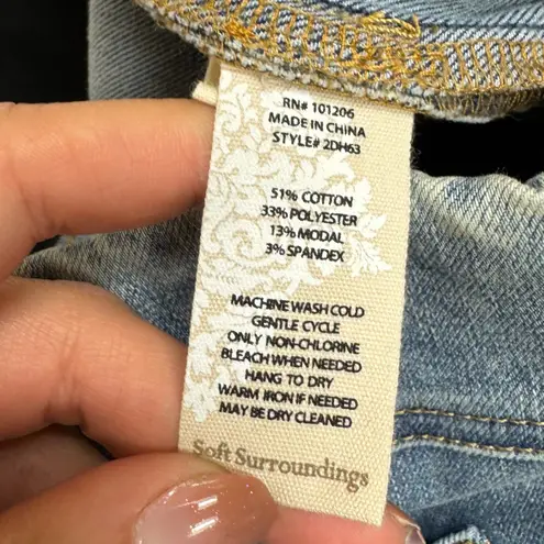 Size Small Preowned-Good Condition Keywords: Soft Surroundings, denim, bootcut, stretch, blue jeans, womens pants, casual, distressed, ankle detail, pull on, comfortable, everyday wear, size small Thank you for shopping Mavia Trading! Items marked preowned are in good condition with no damages unless otherwise noted in the listing. Measurements can be found in the photos. Some items do not have measurements and we are unable to provide measurements for those listings. Check out the Brand site for sizing in this case! If there are any issues please send us a message so we can try and work the issue out with you! Thank you so much! We appreciate your business!