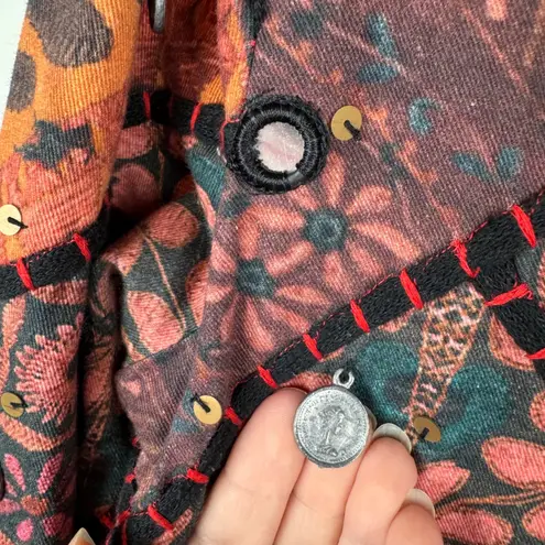 Good Pre-Owned Condition (see pics for details) Flaws: Has sequin detailing on cuff that is missing and fabric care tag has been ripped (shown in photos). Eye-catching patchwork blazer from Soft Surroundings, featuring a unique bohemian design. This jacket showcases a vibrant mix of patterns and colors, enhanced with sequin and coin embellishments for a touch of sparkle. The tailored silhouette and button closure add a polished finish to the eclectic style. Perfect for adding a statement piece to your casual outings or dressing up for a creative social gathering. Type: Blazer Outer Shell Material: 100% Cotton Style: Basic Jacket Department: Women Color: Multicolor Lining Material: Polyester Accents: Sequin, Button, Embroidered, Beaded Features: Sequin Embellished, Coin Embellished, Patchwork, Shoulder Pads Fabric Type: Knit Pattern: Floral Insulation Material: Polyester Keywords: Soft Surroundings, Patchwork Blazer, Bohemian Jacket, Sequin Embellished, Coin Embellished, Statement Jacket, Eclectic Style, Festival Wear, Boho Chic, Medium Size, Unique Blazer, Colorful Jacket, Art to Wear, Boho, Patchwork, Jacket, India, Coin, Embellished, Festival, Medium, Ethnic, Statement, Tribal, Hippie, Mirror, Embroidery, Metallic, Cotton Measurements: included in photos. Please compare the measurements to something you already own for a great fit! Fast shipping: Shipped out next business day! Please let us know if you have any questions!
