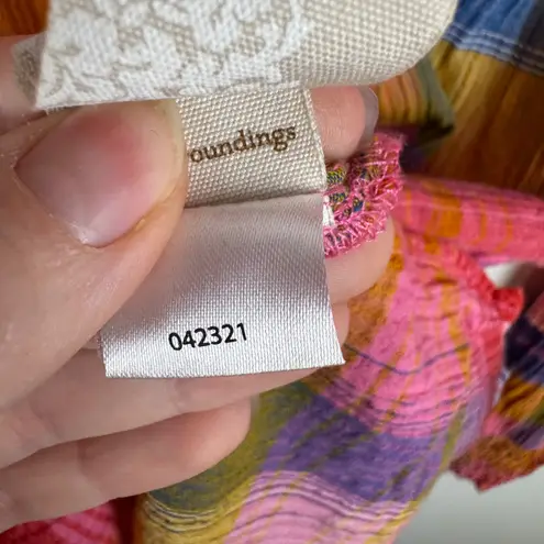A vibrant plaid button-down top from Soft Surroundings, featuring a lively mix of colors. This long-sleeved shirt is designed with unique smocked detailing at the cuffs and shoulders, adding a touch of texture and visual interest. The lightweight fabric and relaxed fit make it comfortable for all-day wear. Perfect for adding a pop of color to your casual wardrobe, this top is ideal for weekend outings, relaxed office settings, or casual get-togethers with friends. Color: Multicolor Type: Blouse Department: Women Style: Basic Material: Cotton Neckline: Collared Sleeve Length: Long Sleeve Sleeve Type: Classic/Fitted Sleeve Accents: Button Pattern: Plaid Features: Smocked Cuffs, Lightweight, Relaxed Fit, All Seasons Fit: Relaxed Keywords: Soft Surroundings, plaid shirt, button down top, long sleeve, colorful blouse, smocked cuff, womens top, casual shirt, size XL, boho style, festival wear, cotton top, relaxed fit Excellent Pre-Owned Condition (see pics for details) Flaws: No visible flaws. Measurements: included in photos. Please compare the measurements to something you already own for a great fit! Fast shipping: Shipped out next business day! Please let us know if you have any questions!