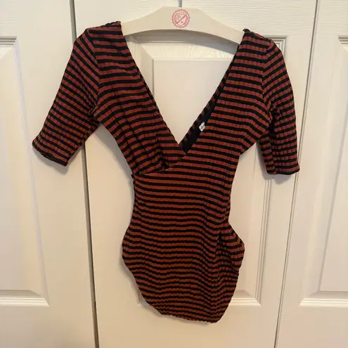 Solid & Striped Alison One Piece Short Sleeve Swimsuit in Orange & Black Stripe - $39 - From Ashley