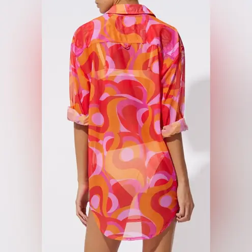 Retro feel to a timeless silhouette. Featured in a soft mesh fabrication the Dallas Tunic offers the relaxed yet chic fit your wardrobe needs. Pair with the Odette Pant for a beach to night co-ord. Model wearing a size Small. Height 5’9”, Bust 33” Waist 25” Garment made in China Content: 95% Polyester, 5% Elastane Handle with care: Hand wash with luke warm water. Lay flat to dry. Steam to shape only. Dry clean.