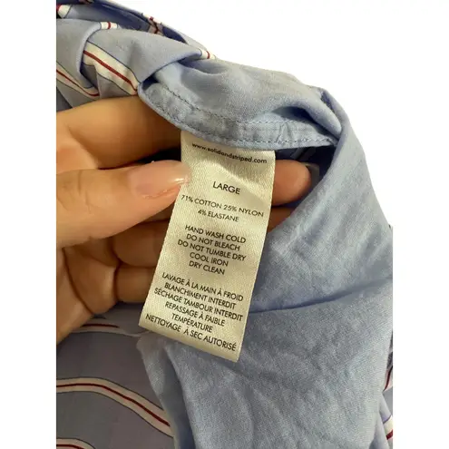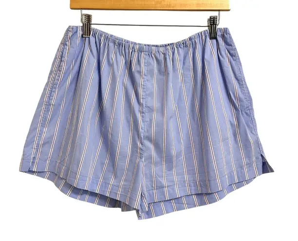 Pre-owned. No flaws. Smoke free home. Waist 14'' Inseam 2.5'' Pyjama-style shorts Premium Italian cotton These shorts showcase a light blue base adorned with thin, vertical stripes in white and red, offering a preppy and summery aesthetic. They have an elastic waistband for a flexible and comfortable fit, and a relaxed silhouette that drapes nicely. These lightweight shorts are perfect for casual wear. Color: Blue Department: Women Fabric Type: Poplin Material: Cotton, 100% Nylon Occasion: Casual, Travel Character: Sofia Richie Pattern: Striped Performance/Activity: Beach, Walking, Casual Fit: Relaxed Front Type: Flat Front Keywords: Solid & Striped, Sofia Richie, Shorts, Striped Shorts, Blue Shorts, White Shorts, Red Stripe, Elastic Waist, Casual Shorts, Summer Shorts, Relaxed Fit, Cotton Shorts