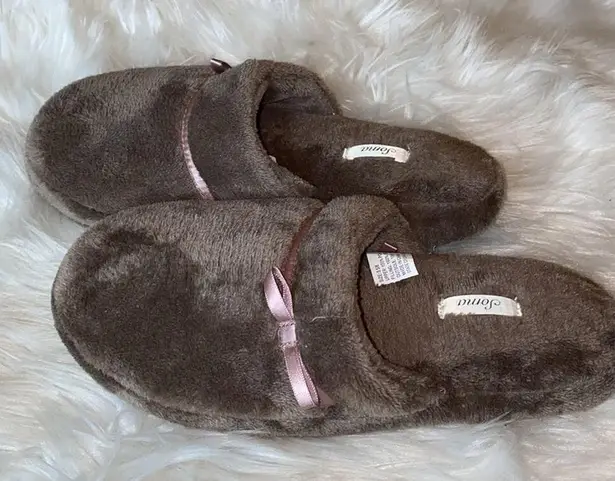 Soma Soft Fuzzy Brown Bow Slippers Small (5/6) - $16 - From Summer