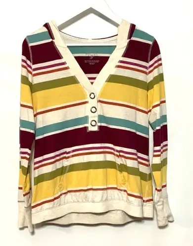 Sonoma hooded pocket striped button snap medium small dot on pocket. Please see last photo. Very s... Show more
