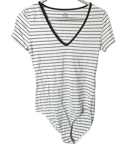 Sonoma Short Sleeve Striped V-Neck Bodysuit Sz M White and black striped V-neck bodysuit. Short sl... Show more