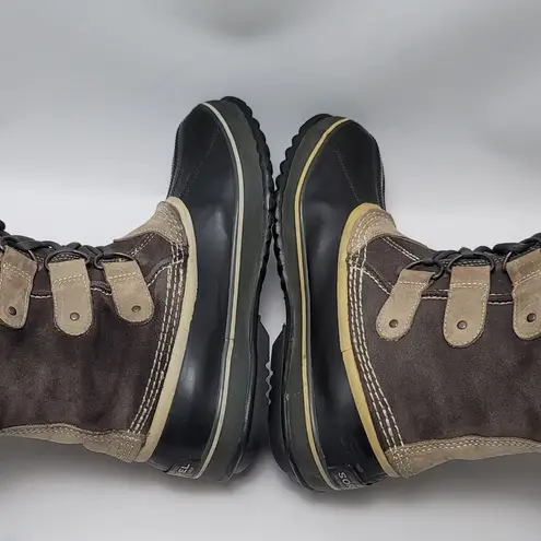 These Sorel boots are a size 10 US, 8.5 UK, 42 ⅔ EUR, and 27 CM. Feature a warm lining of 100% recyc... Show more