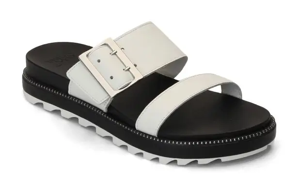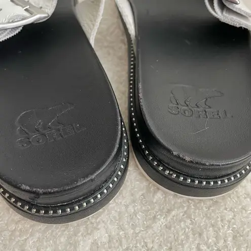 Women's Sorel, Roaming Buckle Slide Sandal. Gently preowned with some minor nicks to the black aroun... Show more