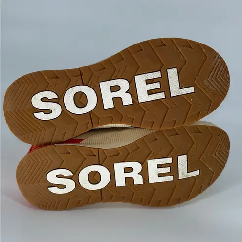Sorel boots with a cream exterior and vibrant orange lining. Features a lace-up style. Sorel Leathe... Show more