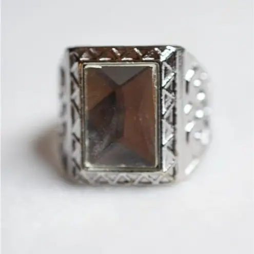 Beveled Mirrored Glass Engraved Silver Tone Size 9 Statement Glam Unisex Ring - $8 - From Chrystal