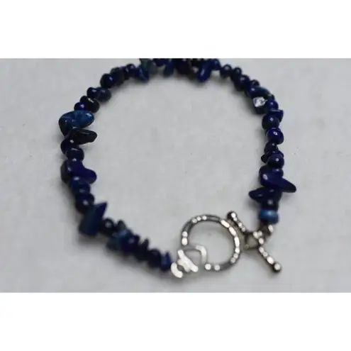 Blue On Blue Stacked Stone Silver Tone Toggle Latch Bracelet - $6 - From Chrystal
