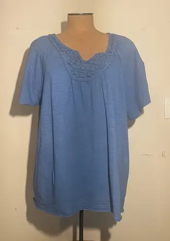 Blue Women's Top short sleeve embroidered v-neck line size 2x - $8 - From MB