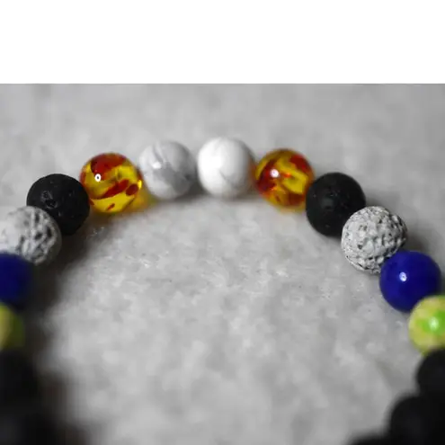Everyday Casual Beach Party Black Lava Rock/Colorful Beaded 5" Stretch Bracelet - $8 - From Chrystal