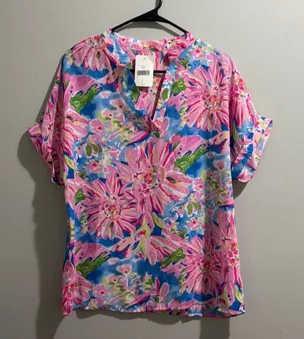 Floral Pink and Blue Women's Top Size L - $15 - From Keely