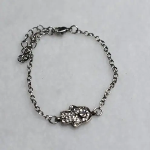Glittering Hamas Rhinestone Hand Silver Tone Link Chain Gently Worn Bracelet - $7 - From Chrystal