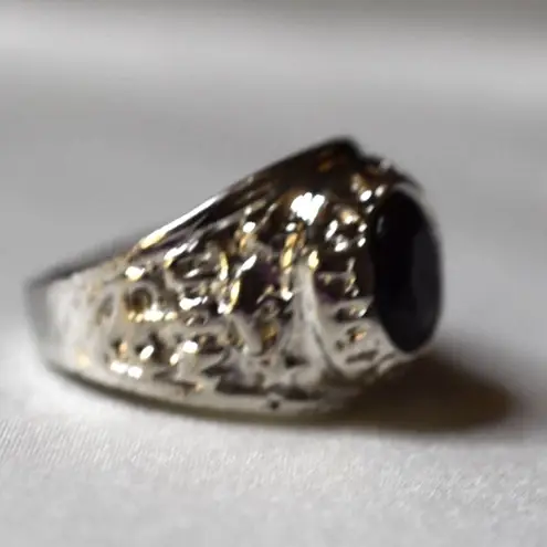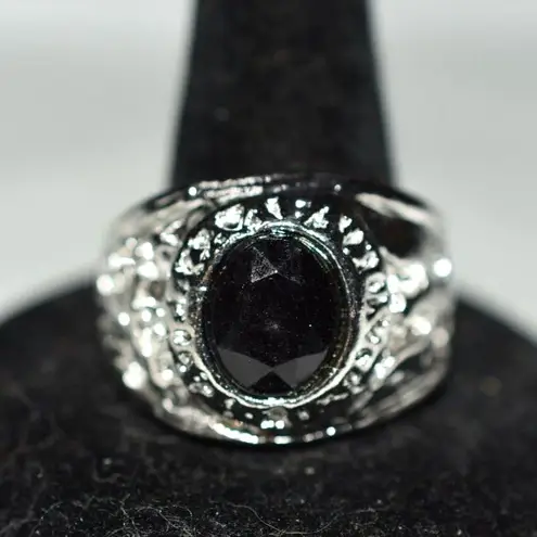 NWOT Gothic Black Beveled Stone Etched Eagle Silver Tone Metal Size 13.5 Ring - $10 - From Chrystal