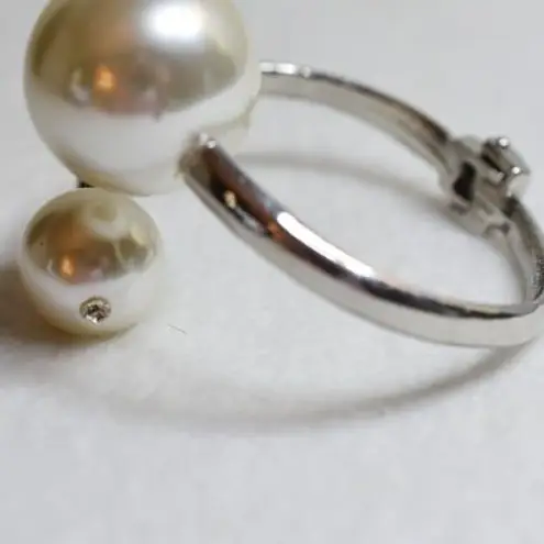 Party Glam Chunky 2 White Faux Pearl Ball Silver Tone Spiral Hinged Bracelet - $6 - From Chrystal