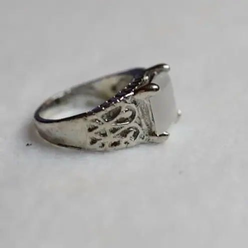 Smoky White Stone Engraved Silver Tone Band Size 7 Goth Statement Unisex Ring - $7 - From Chrystal