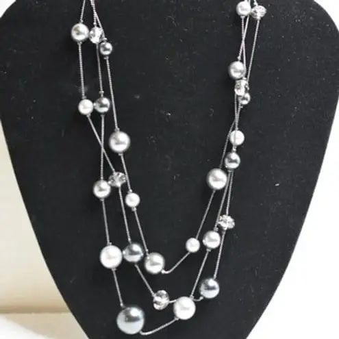 Vintage Triple Layer Floating Shades Of Gray Beaded Classic Like New Necklace Silver - $12 - From Chrystal