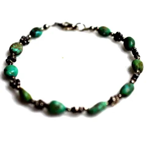 Vintage Turquoise Stone Silver Tone Flower Spacers Lobster Claw Clasp Bracelet - $7 - From Chrystal