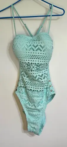 Women’s One Piece Crochet Sheer Swimsuit Button Detail Adjustable Straps Size 10 Blue - $18 - From Quirky