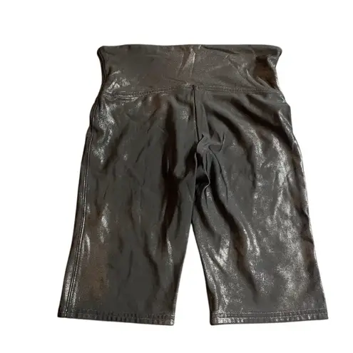 Keywords: Spanx, bike shorts, high waist, faux leather, metallic, shine, stretch, athleisure, workout, fashion, women's shorts, black shorts, statement piece, night out, comfortable