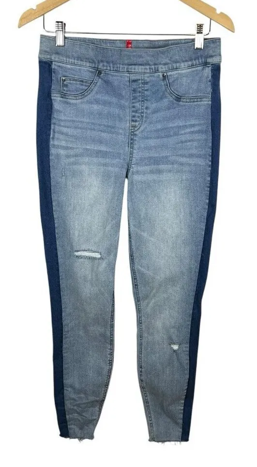 SPANX Jeans Women's Large‎ Blue Two Tone Distressed Ankle Skinny Pull On jeans - $37 - From Brooke