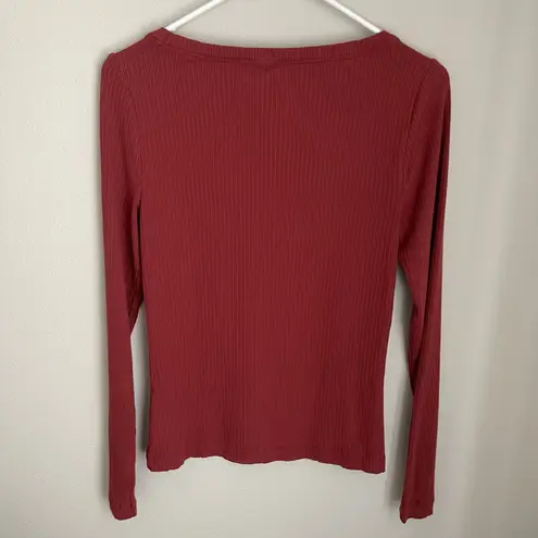 SPANX Red Ribbed Long Sleeve Scoop Neck Top Size Small Stretchy ribbed fabric Scoop neck Long sleev... Show more