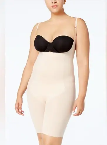 This cream shapewear bodysuit by SPANX offers a smooth and stretchy fit, perfect for seamless layeri... Show more