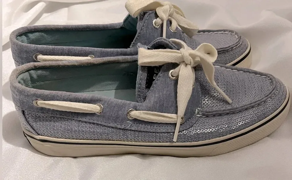 Sperry bahama blue sequin women’s boat shoes. Size 7. Good used condition. Callouts are interior has... Show more