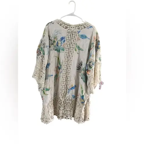 Spiaggia dolce Size large cover up 100% rayon is cream and white floral cardigan with flace detailin... Show more
