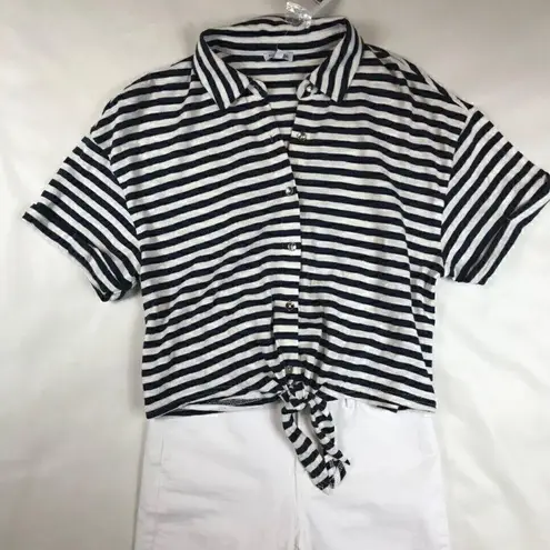 Splendid-Navy & White Stripe tie front shirt. Classic navy/white striped shirt with a cute tie front... Show more