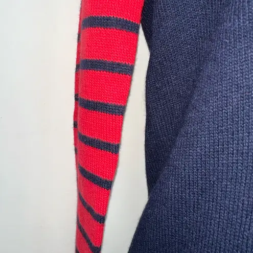 Relaxed fit Crewneck Navy blue with red striped sleeves Angora cashmere wool blend