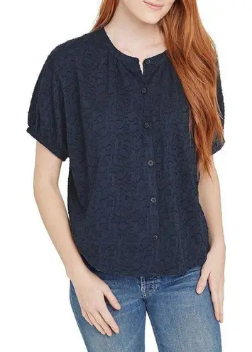 Splendid Pierce Embroidered Blouse Textured Puff Sleeve Button Down Navy MediumReview photos for exc... Show more