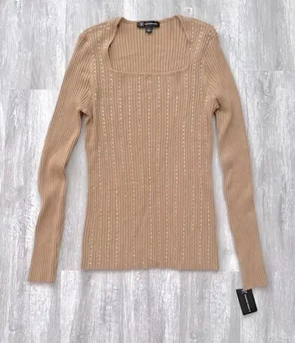 Square Neck Stone Studded Long Sleeve Top L Tan Size L - $32 New With Tags - From A