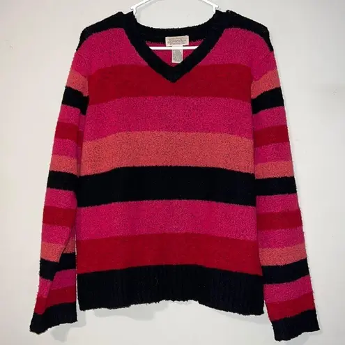 St John’s Bay large womens sweater pullover striped v-neck wool blend stretchy Pink - $18 - From Melissa