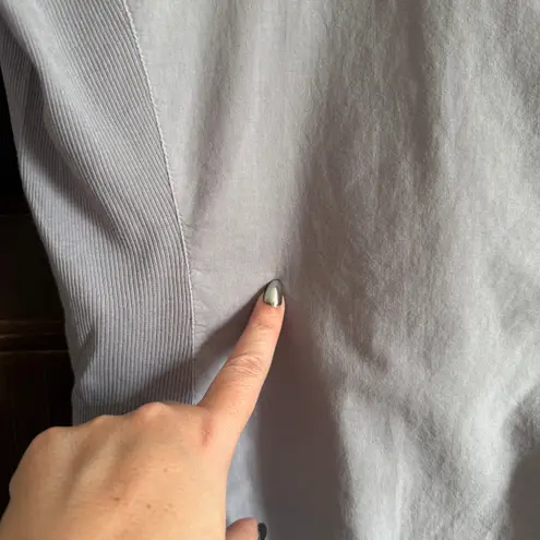 Standard JAMES PERSE | Gray Cotton Button down Roll Cuff Shirt Soft flowy fabric Ultra soft ribbed jersey panels at side Roll tab Sleeves Two flap front pockets Slim fit One tiny light speck on the back (see last image - pretty hard to notice unless you're really looking at it), otherwise excellent condition. James Perse Size 1 / Women's size S Lay-flat measurements: chest, pit to pit: 18 inches Length, Center back: 24.5 inches