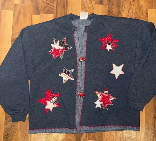 Stars, flag red white‎ and blue handmade cardigan top size large Fourth of July - $23 - From Ceciley
