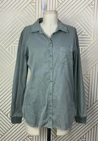 Stateside Button-Down in Green. Long sleeve Button down Collared Pocket on front Distressed at hem Two tone darker green at sleeves and back Ribbed cuff on sleeves Size US Small 100% pima cotton Machine wash cold Armpit to armpit is approx 19" Length is approx 27"
