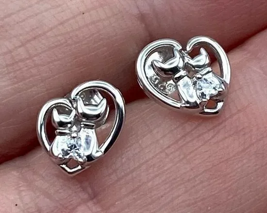 Sterling Silver Cat Earrings With CZ Heart Nickel-free, Lead-free and Cadmium-free Material: Solid 9... Show more