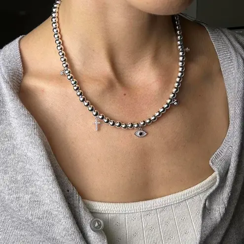 Sterling silver plated hematite charm necklace with cross evil eye - $30 - From Carly