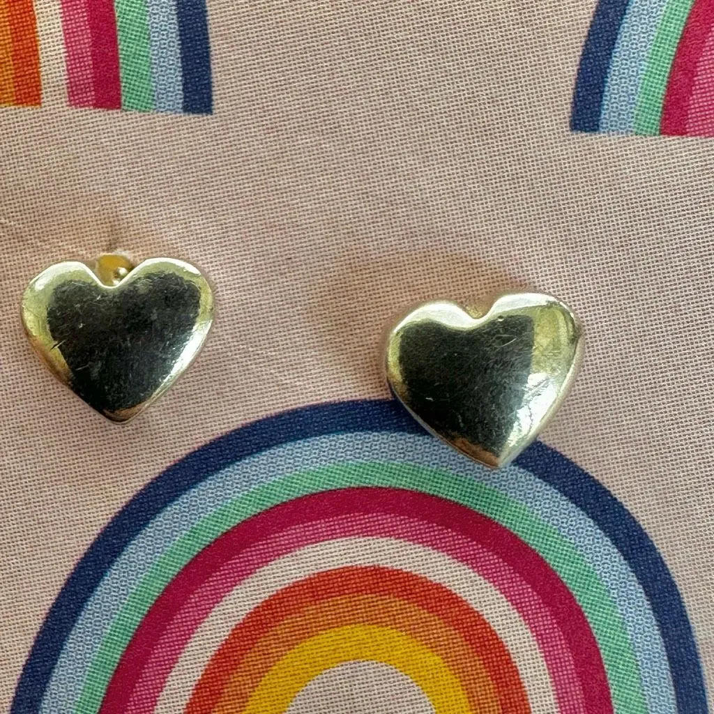 - Classic & Sweet Everyday Style These charming puffy heart stud earrings are crafted in solid sterling silver, perfect for adding a touch of love to your everyday look. Comfortable and timeless, they’re great for gifting or keeping! Stamped 925 on the backs. ✨ Solid sterling silver ✨ Classic puffy heart design ✨ Lightweight and easy to wear 📌 Condition: Good vintage condition! 💫 Some surface wear and patina, but still shiny and cute—backs are secure and marked 925. Bundle to save! Free gift with a purchase of 3 or more items. Photos are part of the description. Reasonable offers welcome! #sterlingsilver #heartstuds #minimalistearrings #everydayjewelry #vintageearrings #925silver #lovestyle
